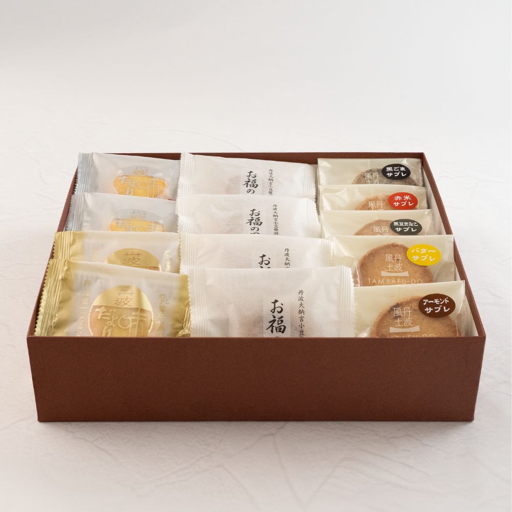 丹波大納言小豆や丹波黒豆など、丹波の最高和食材をたっぷり使ったお菓子のセットです。
